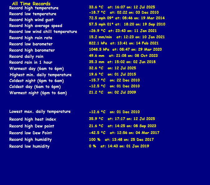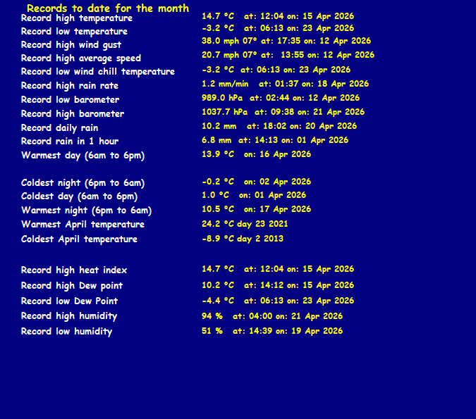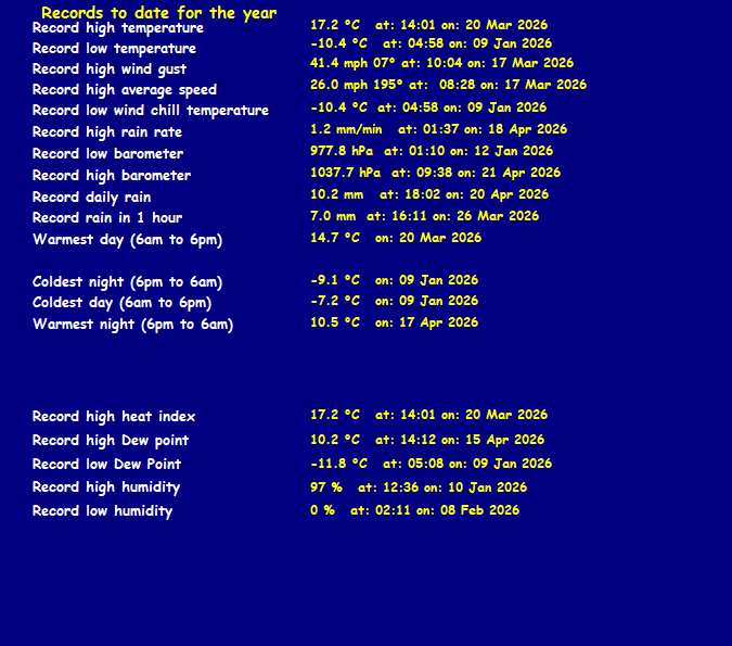 | Yesterdays rainfall | 0.0 | DewPoint | 2.0 (Wet Bulb :2.8) |