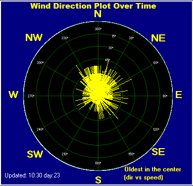 | Maximum Gust (since 0 hour) | 5.0 at: 09:23 | Maximum 1 minute average (since 0 hour) | 3.5 at: 09:24 |