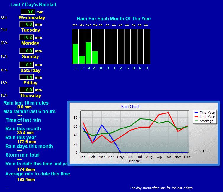 | Rainfall This month | 35.4 | Rainfall To date this year | 177.6 |