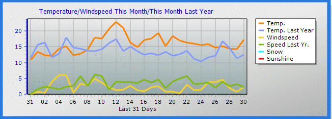 | Windchill Temperature | 3.3 | Maximum Gust (last hour) | 5.0 mph WSW at: 09:23 |